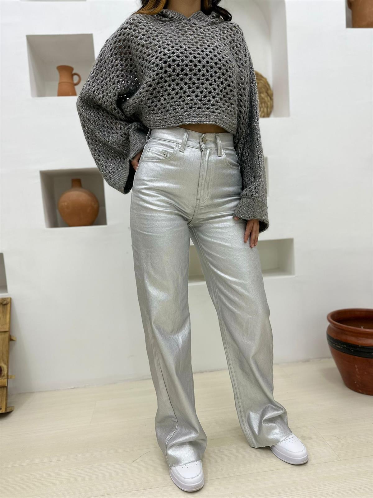 Kapüşonlu Fileli Kalın Salaş Kazak-Füme